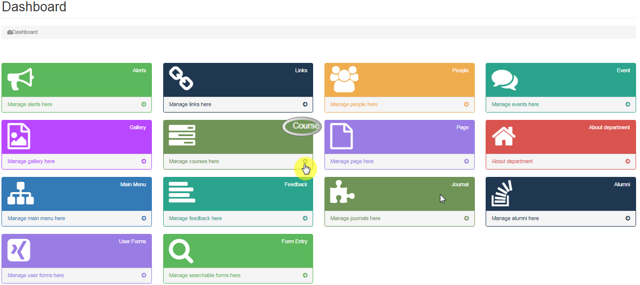 Course and Course list can be linked to the desired Page by either creating a new Page in Main Menu or linking it to the existing Main Menu.