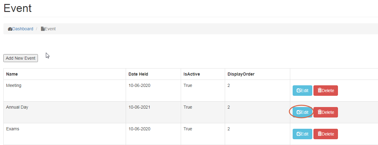 Is Active allows user to select whether the event is to be made Visible or not on the website. User can enter details of an event and select Is Active option later to reflect it on the website.