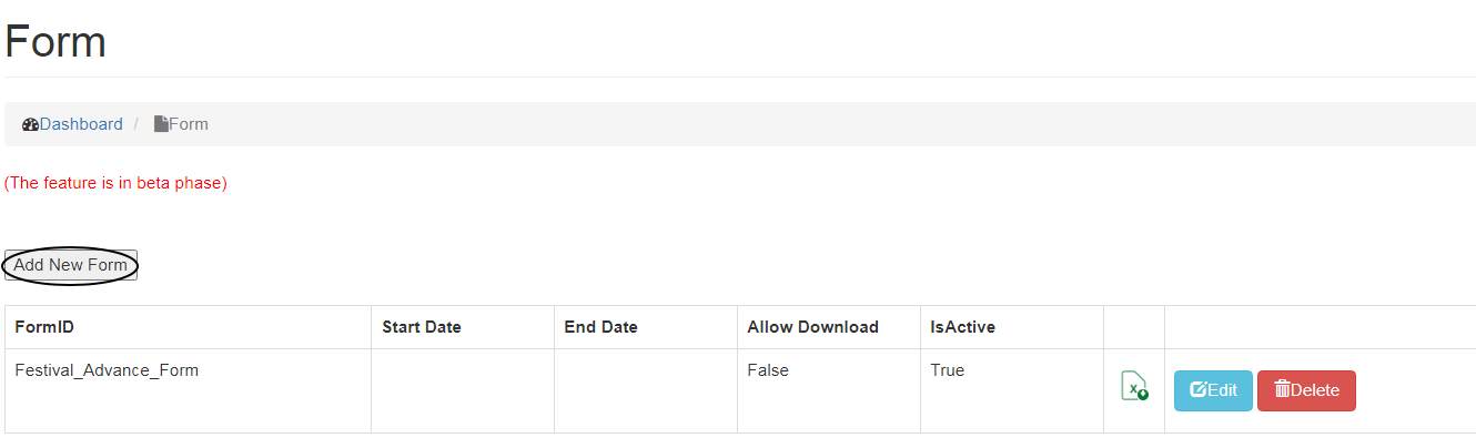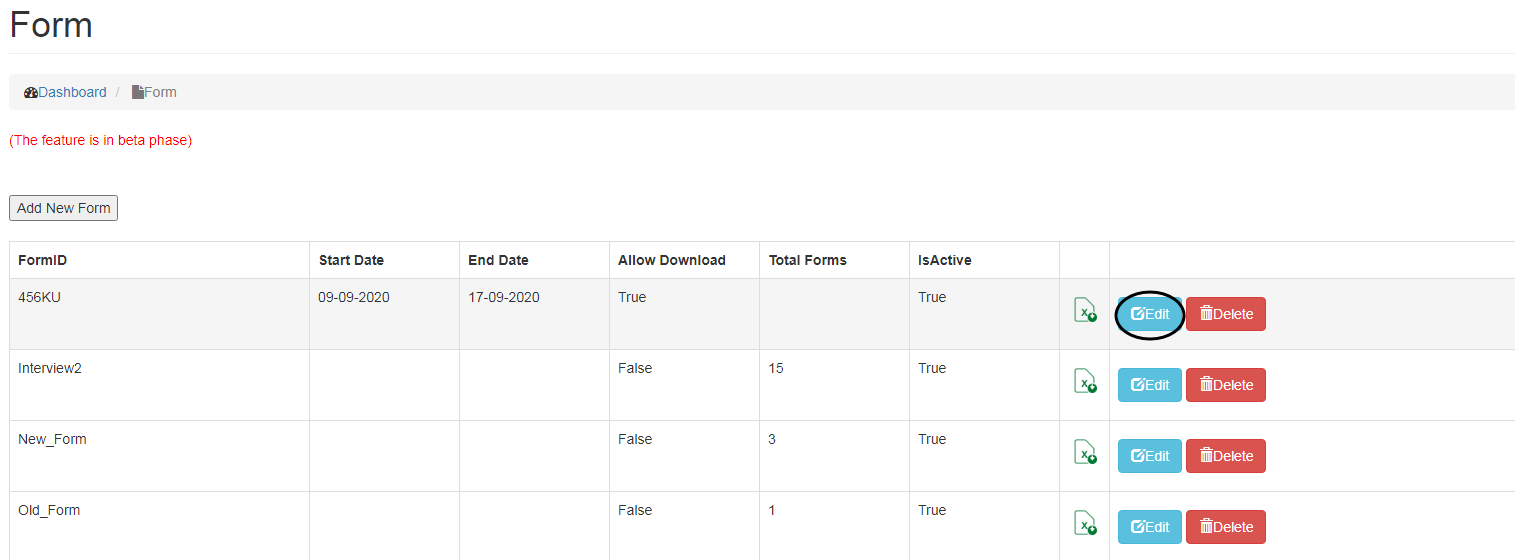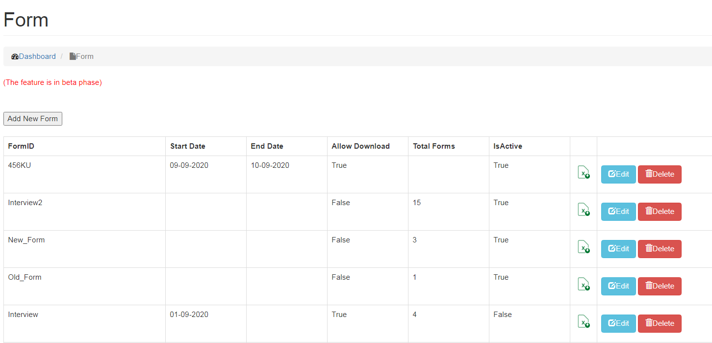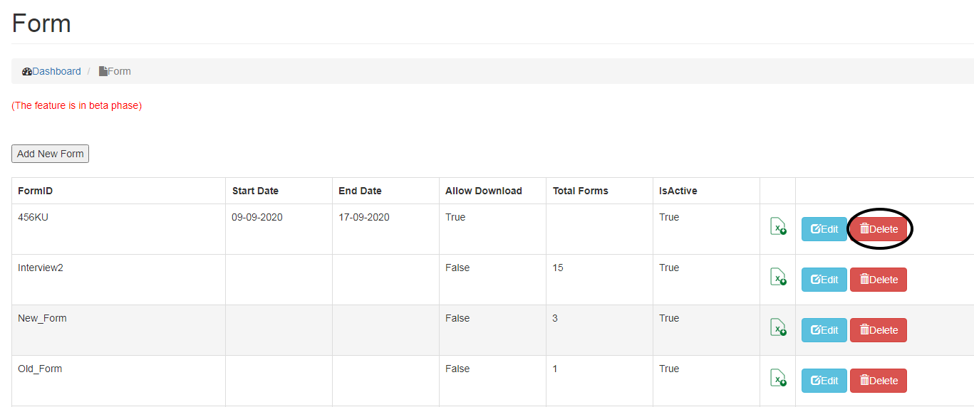 Note: You wont be able to delete a form, if any user has been submitted a form against this Form.