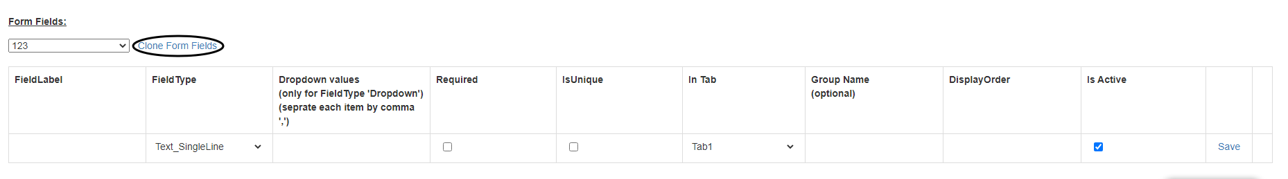 - Select the form name from the drop down menu, fields of which you want to clone and