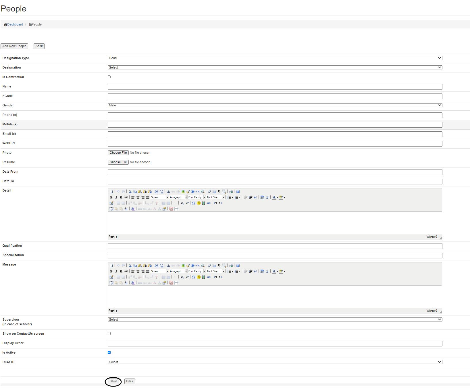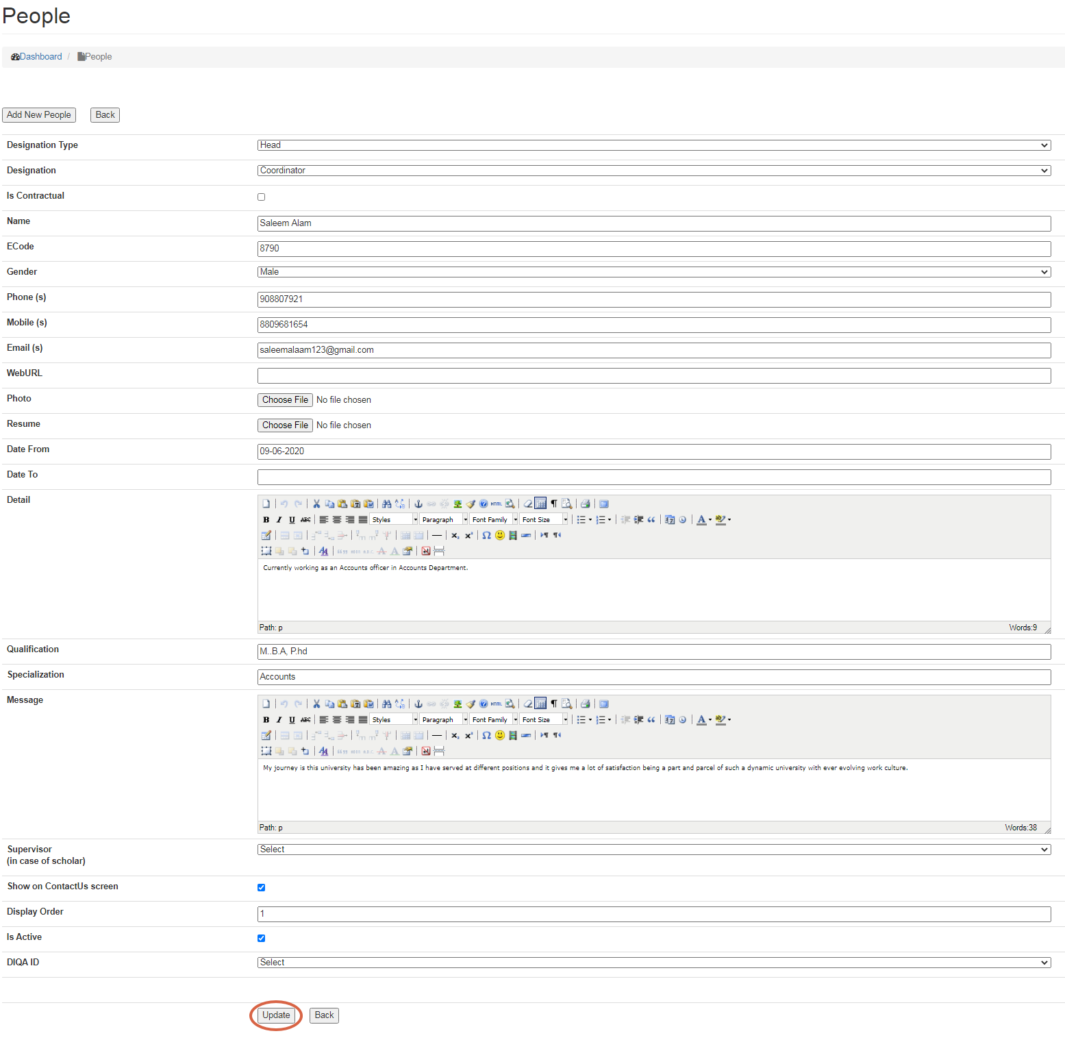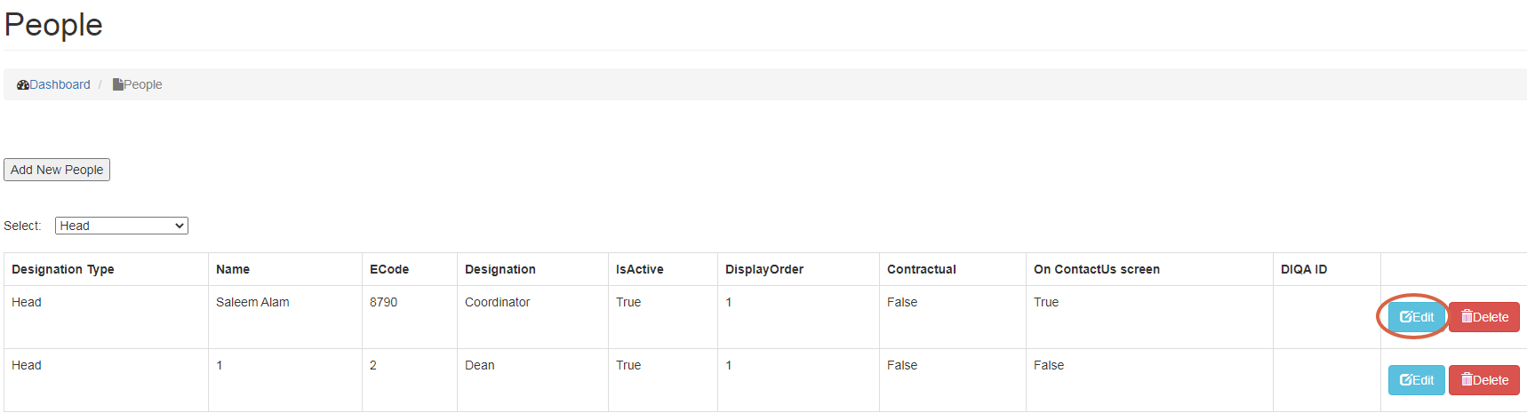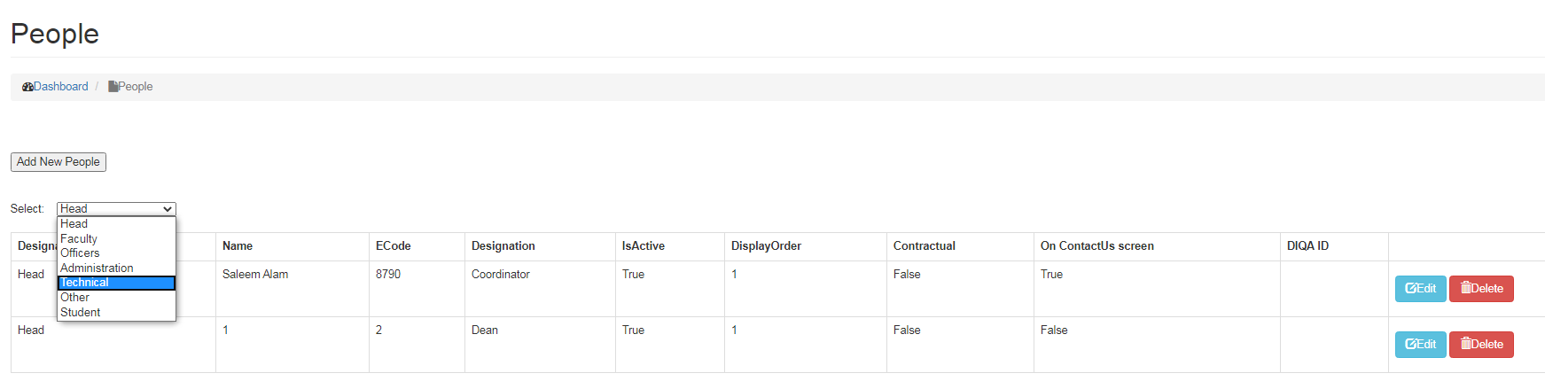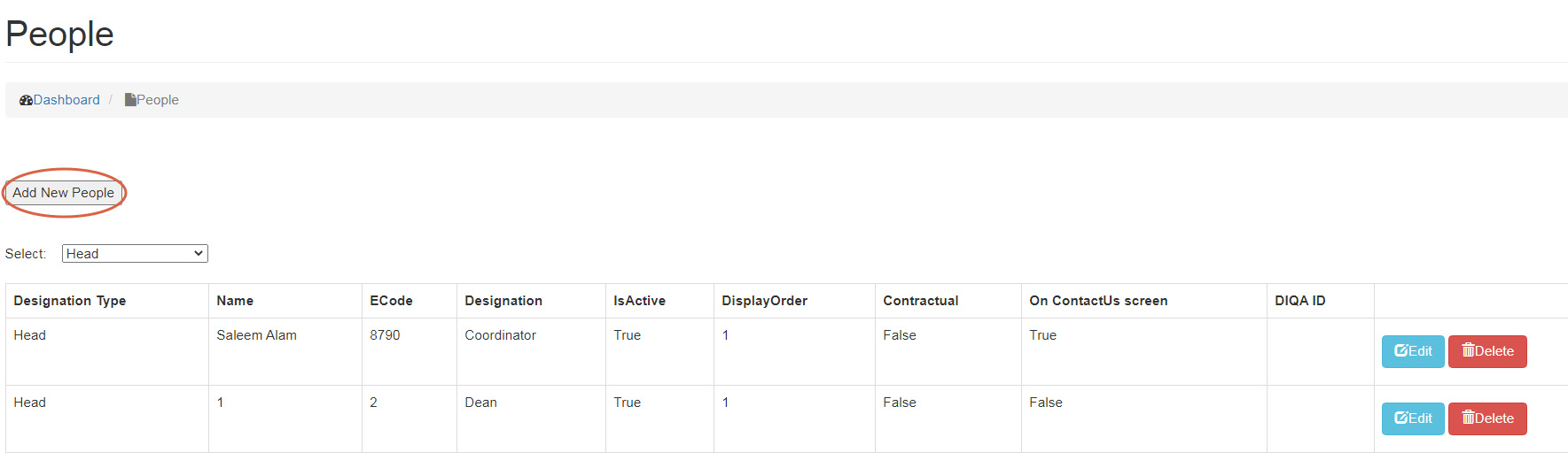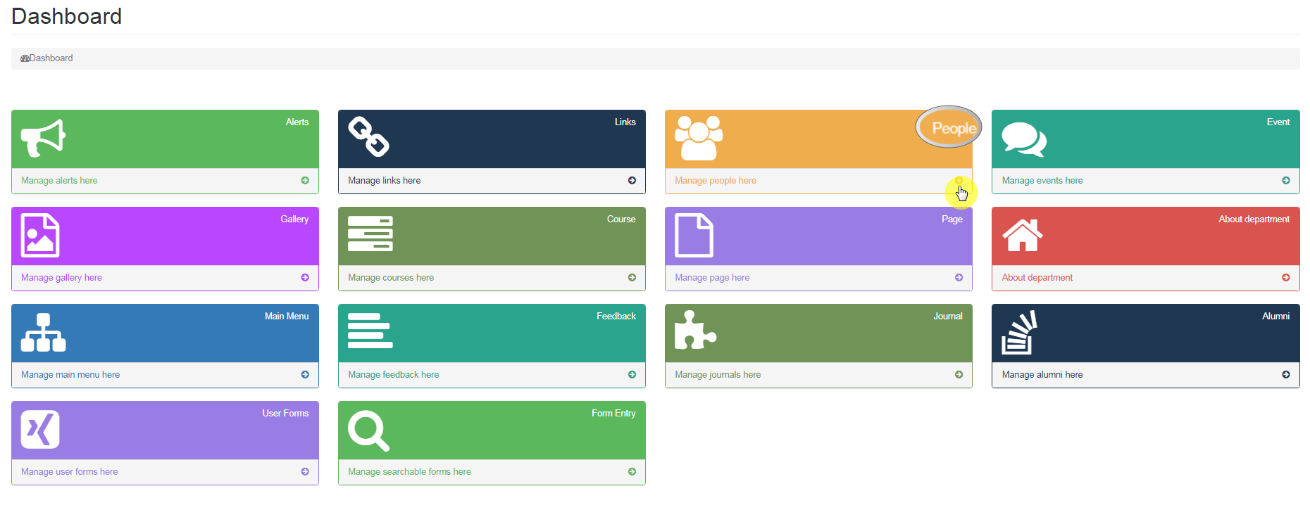 People is a feature in content management system, using which changes can be made to the people and Profile page on the website.