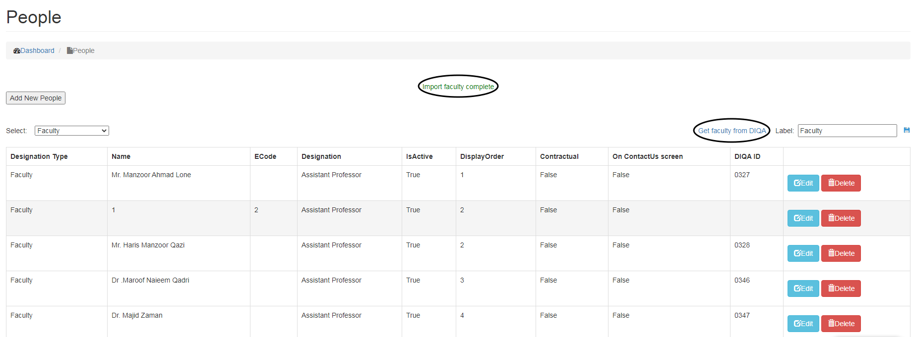 If in case, you do not find the ID of particular faculty, click on Get faculty from DIQA, to fetch the details of all the faculty members.